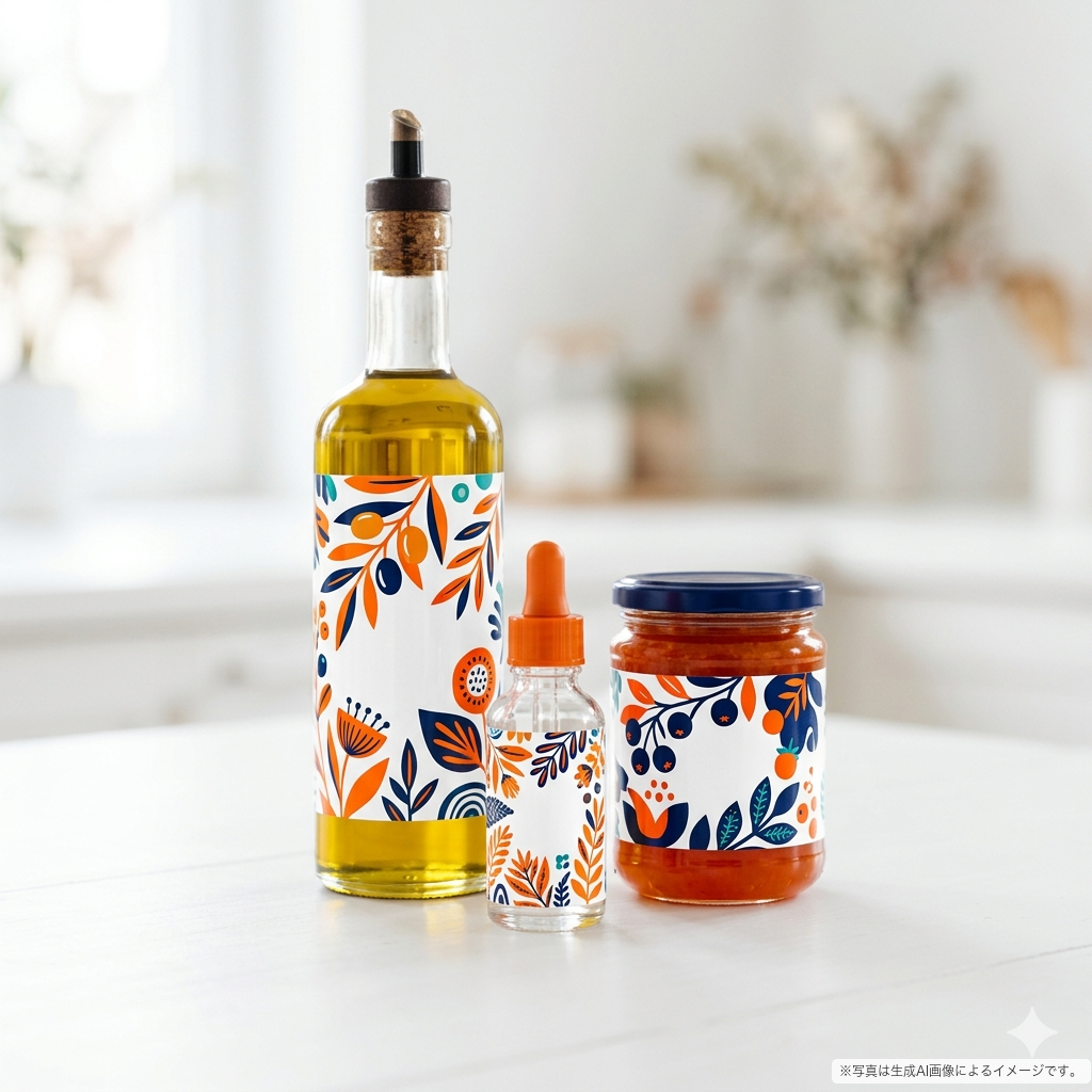 商品ラベル・食品表示・化粧品ラベルに。オリジナルラベルを小ロット10枚からお作りします。耐水・耐油素材も対応。送料無料・最短5営業日で出荷。